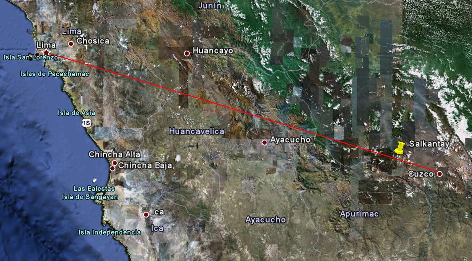 Foi um voo extraordinário como passageiros num BAE 146 da Star Perú. Uns 20 minutos antes do final deste fantástico voo de cerca de 600 kms de Lima para Cusco surge a Cordilheira dos Andes, representada aqui por um dos seus picos mais elevados, o Nevado Salkantay (Alt 6'271 m - 20'574 ft).